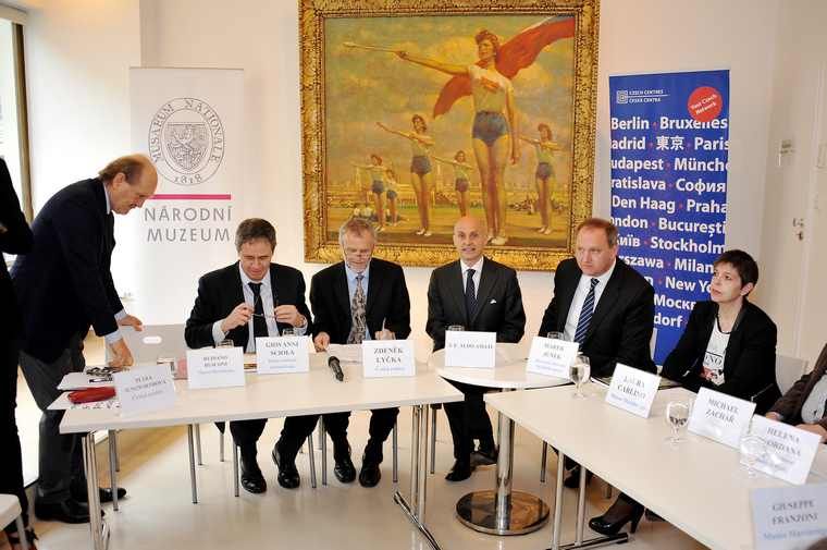Tisková konference k výstavě Mistrovská díla Vlastimila Košvancepřipravené ze Sbírky TVS ve spolupráci s Museo Martinengo Villagana (Itálie), Českými centry a Italským kulturním institutem, České centrum v Řetězové ulici, 6. 5. 2015.